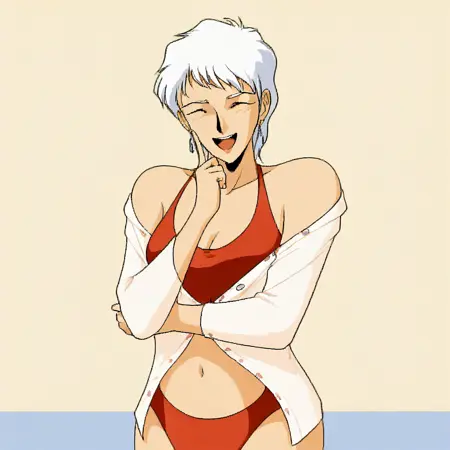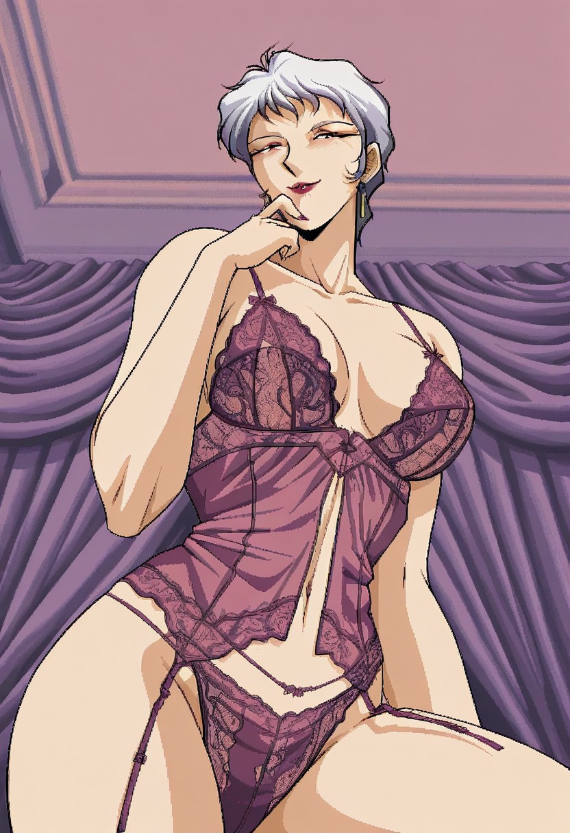 So's, on the heels of the Fatal Relations Reiko lora, I figured I definitely had to do this one. Gloria is so massively superior to Fatal Relations, and Michelle is a far better character without the baggage. But if you've seen both you can see how Fatal Relations was clearly the prototype and Reiko was proto Michelle. They even both have violet eyes! Michelle however is a kind hearted well adjusted matriarch who just happens to be very forward with a guy half her age and if you're not down for that, no worries! You can even marry her! Also, she rocks the short hair and business suit.