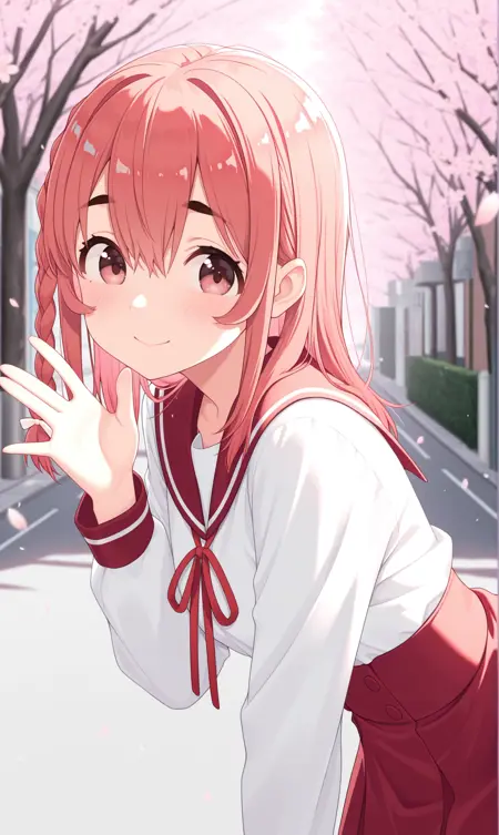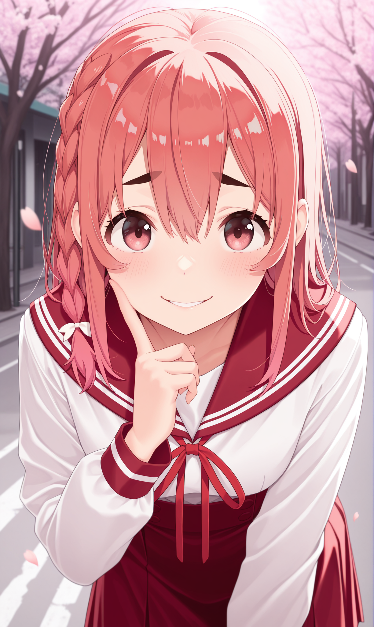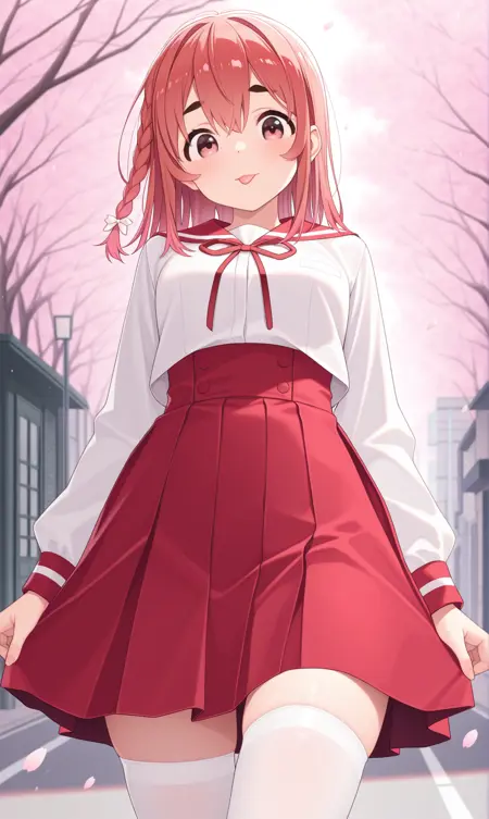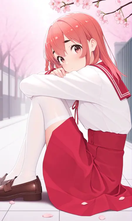 白衬衫,红色水手服,红色丝带,长袖,红裙,高腰裙,白色过膝袜,乐福鞋