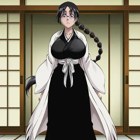 Katori_Batsuunsai, black hair, grey eyes, glasses, braid,
