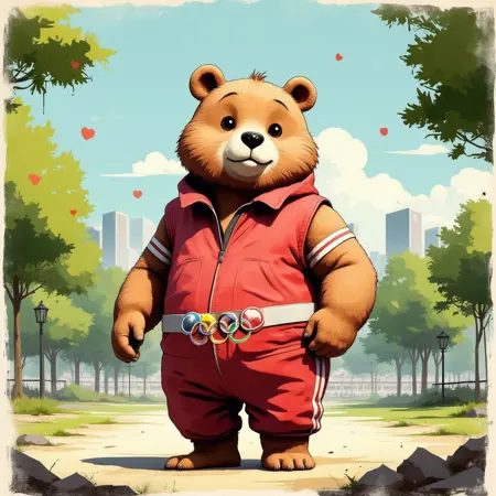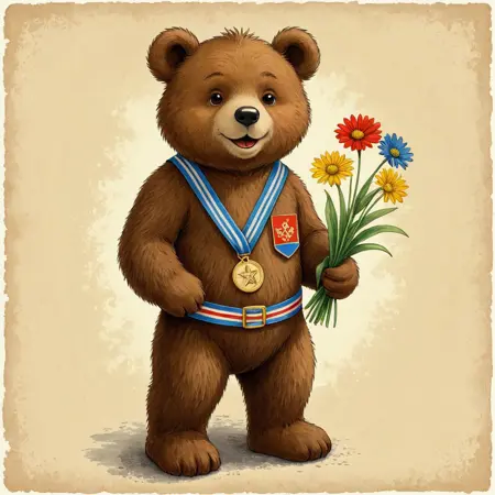 1980年苏联奥运会的吉祥物,艺术风格为复古,仿照20世纪80年代苏联时期的明信片:柔和的边缘、均匀的色彩、最少的阴影,以及手绘的感觉。无额外元素或配饰——专注于标志性的熊的形象。希望这只小熊能为你带来好运,就像它多次为我带来好运一样。