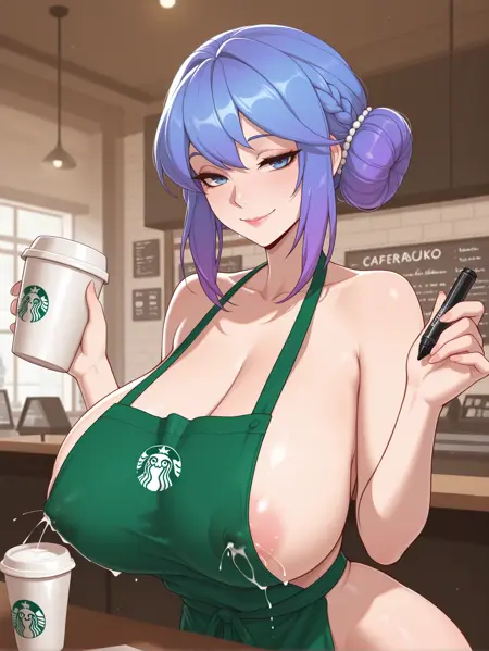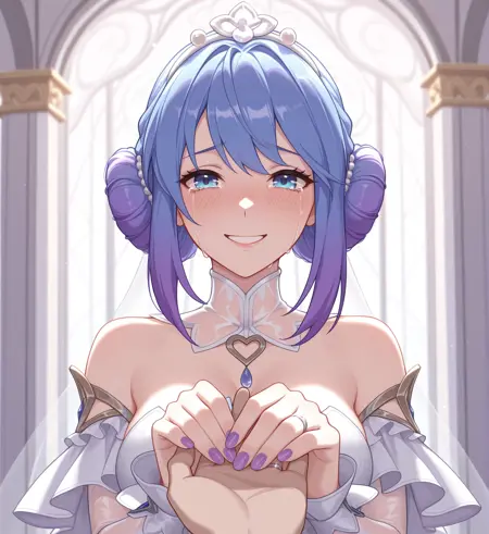 附加标签 - "蓝眼睛,蓝发,渐变发色,紫发,辫子,发髻,双侧发髻"