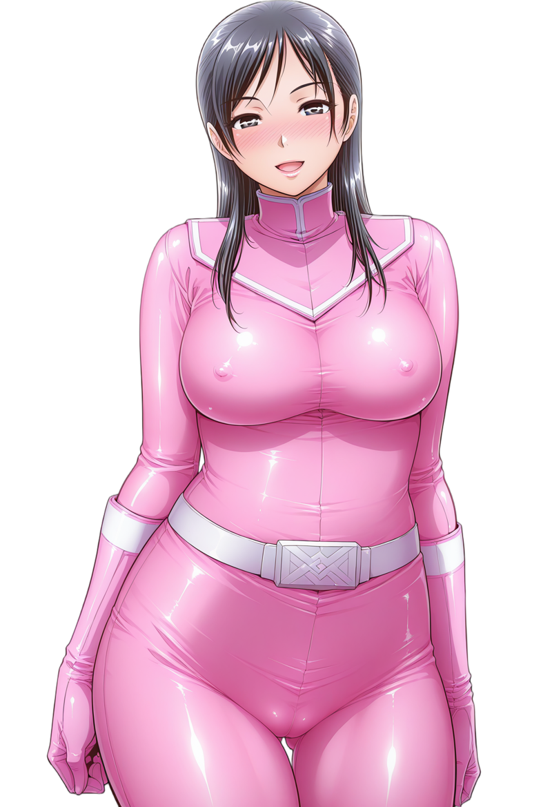 Clothing: bodysuit, pink bodysuit, belt, white belt, gloves,