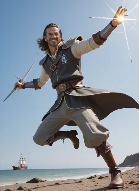 게다가 그는 안경을 쓰고 있는데, 이건 AI 생성 이미지에서 전염성이 있다는 걸 아실 겁니다. 프롬프트에 안경을 언급하면, 그는 자신의 나쁜 시력(?)을 주변 사람들과 공유해 그들까지 안경을 쓰게 만듭니다(언급하지 않아도 보통 안경을 쓰고 있지만, 그 확률은 약 78 3/4%… 그건 뭐죠?).