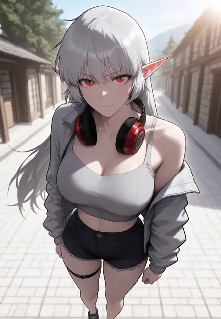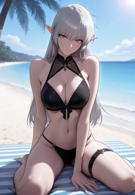 /aliceadultbase/, 1girl, red eyes, grey hair, long hair, pointy ears, slit pupils,