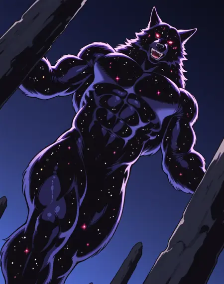 このLoRA向けのプロンプトは以下の通りです:(Starwolf, muscular, wolf, )