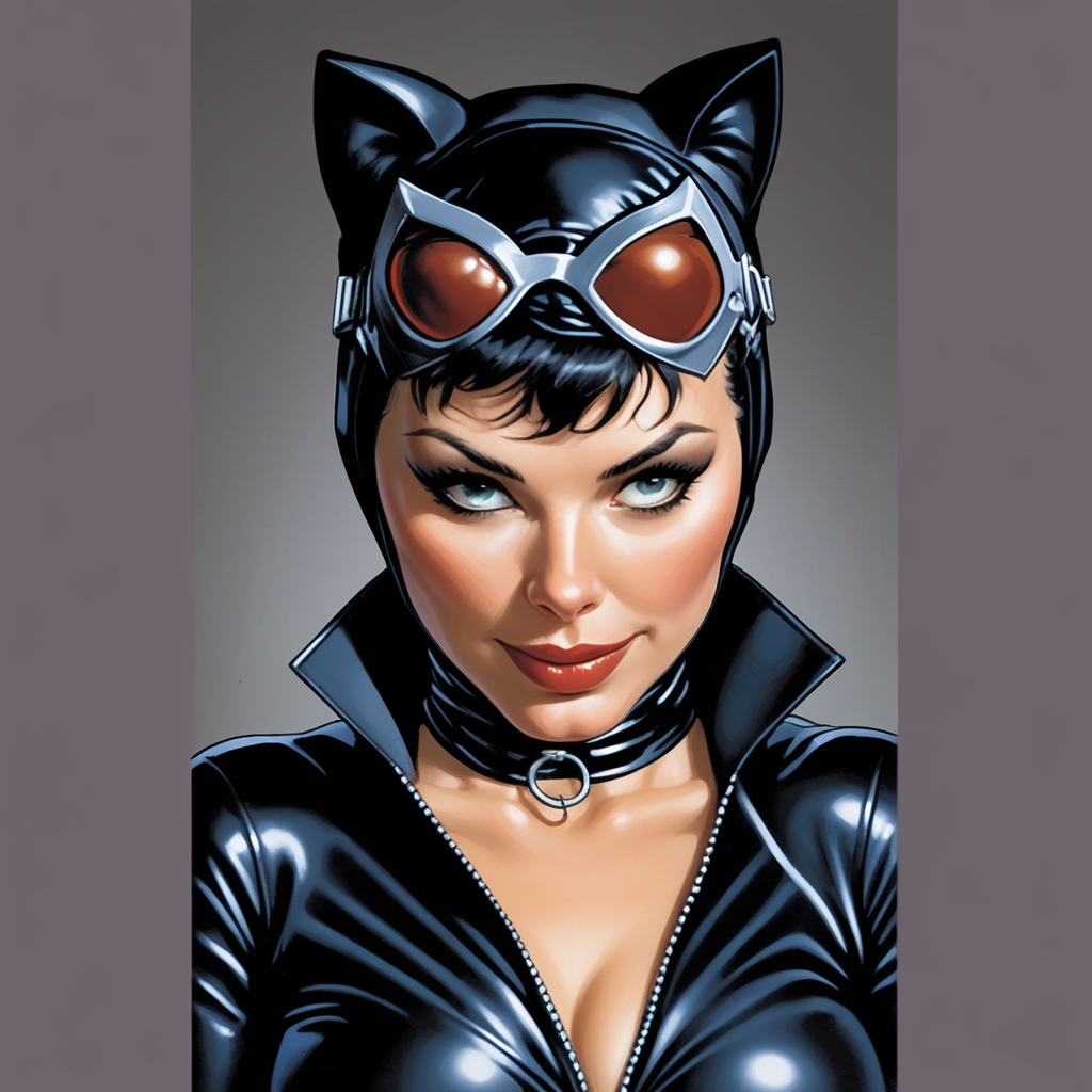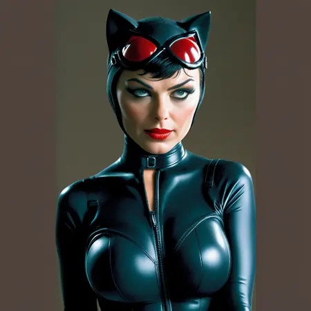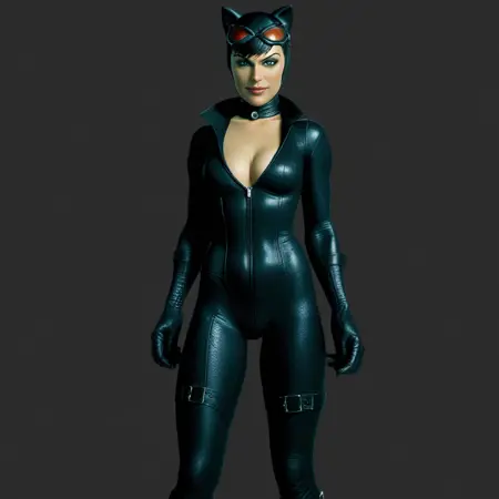 코믹 스타일의 매끄러운 캣수트 또는 아캄 시리즈의 질감 있는 캣수트를 입은 캣우먼의 이미지를 생성할 수 있습니다. SFW 이미지 생성에 크게 치우쳐 있습니다.