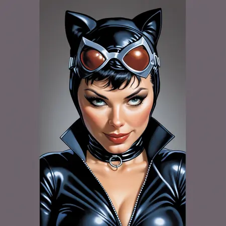 能够创作出猫女的图像,无论是漫画风格的光滑紧身衣,还是《阿卡姆》系列的纹理紧身衣。倾向于生成安全工作环境(SFW)的图像。