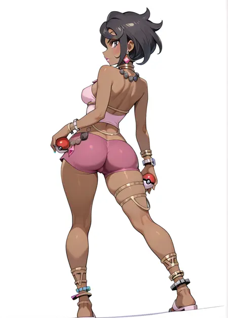 oliviaxd, 1girl, jewelry, dark skin, dark-skinned female, nail polish, black hair, short hair, makeup, bracelet, lipstick, necklace, toenail polish, diamond (shape), black eyes,