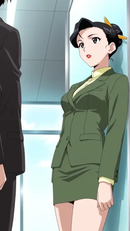 복장: 녹색 치마 정장, 연필 치마, 초상화,