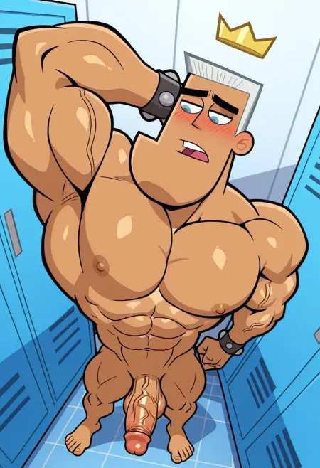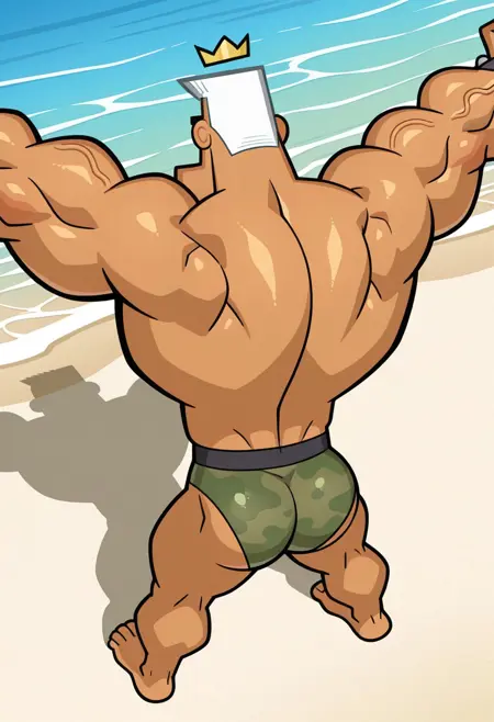 Reinforcement Prompts: "blue eyes, dark skinned male, muscular, manly, bara, long torso, large pectorals, big muscles"