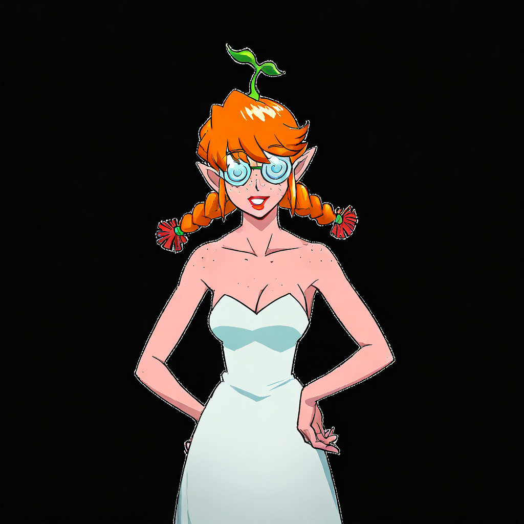 Here’s a Lora of Freckles, a one-shot character from the anime Space Dandy (Episode 17, to be more specific). Always thought she was a cutie, and was surprised that no one did a Lora of her, so… here we are! Available in her normal school uniform, and in her prom scene dress!