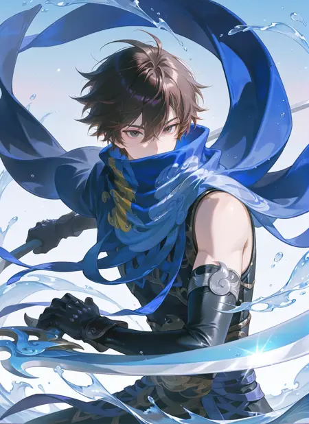 Other hints: weapon,black gloves,black vest,blue trousers,black shoes