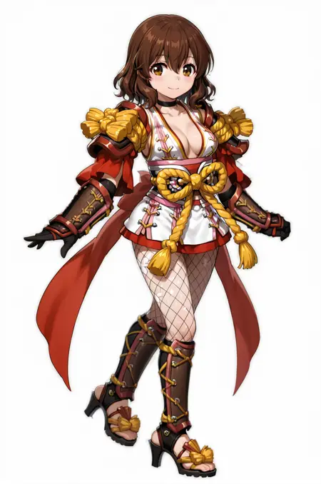 프롬프트: oboroRO, 검은 팔꿈치 장갑, collarbone, 흰색 짧은 킴ONO, 치마, 달팽이, 어깨 갑옷, 팔 보호대, 팔 없는, 가슴 절개, 리본, 활, 로브, 달팽이, 검은 목걸이, 패션 네티 양말, 하이힐 부츠, 정강이 보호대, 발가락이 없는 신발,