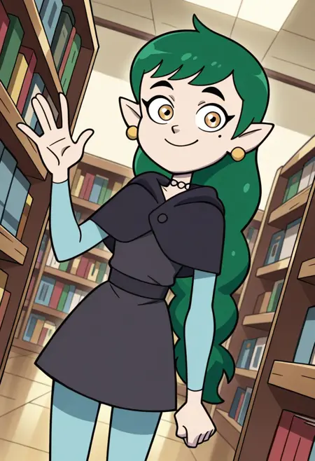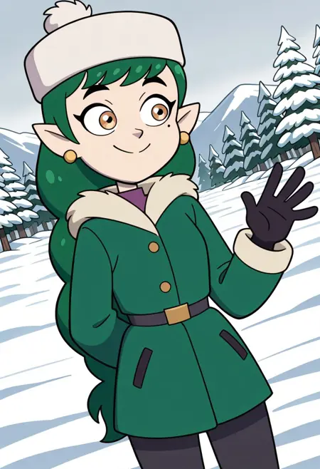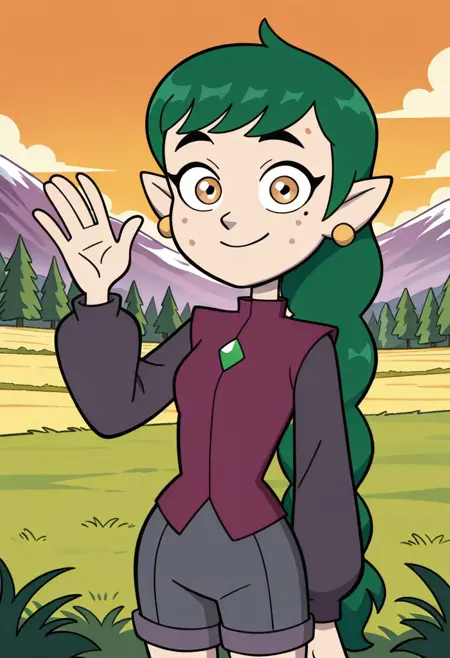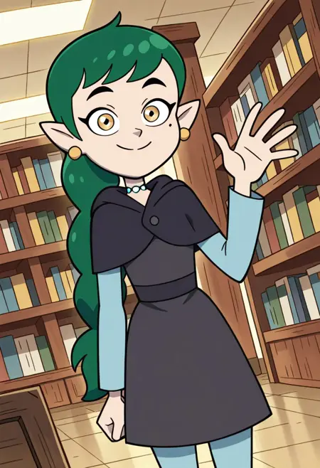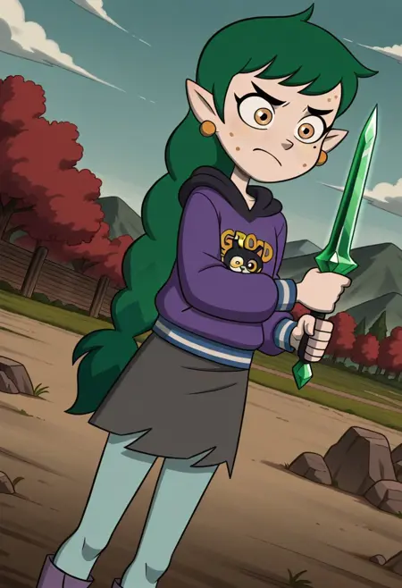 | 训练词汇 | Emira BlightIL, pale skin, pointed ears, golden eyes, thick black eyebrows, mole under left eye, long emerald-green hair, earrings,已复制! True appearance, messy long emerald-green hair, acne on face已复制! long-sleeved dark gray shirt, burgundy tunic, green diamond, belt around waist, gray shorts with burgundy cuffs, black shoes已复制! hexside uniform, black capelet, black dress, black sash, light blue sleeves, light blue pantyhose, black shoes, black choker,已复制! winter coat, winter hat, black pants, black gloves,已复制! yellow dress, yellow bowtie, brown boots,已复制! tattered Hexside sweatshirt over uniform, ripped skirt, acne on face, left wrist bandaged, light blue pantyhose, heeled gray boots with purple toes,已复制! Epilogue, acne, gray long-sleeved shirt, rust-colored trimmed ends, black and purple shoulderless, one-strap-cowl, dull gold dangles, purple shorts, black belt, black heeled boots已复制! |