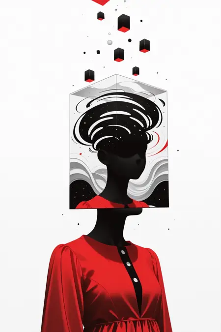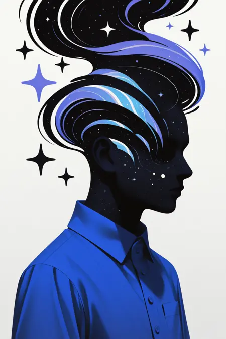 psyhe1d, surreal vector, fluid abstract facial distortion, cosmic dreamcore, ethereal surrealism