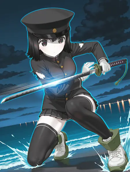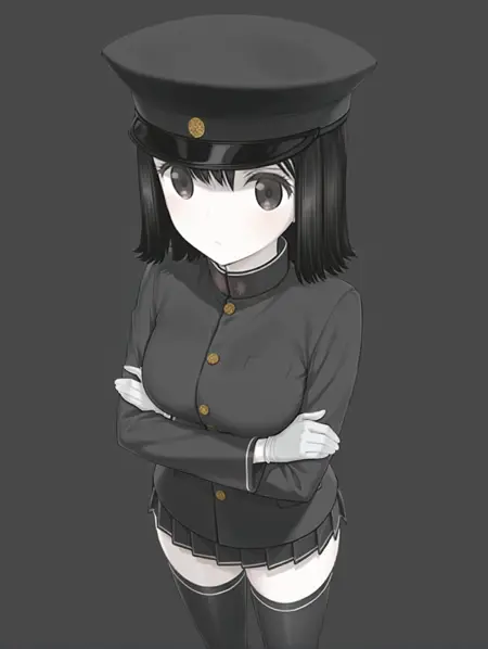 衣装 ・a_clothes,long_sleeves,white gloves,black military uniform,pleated skirt,black_thighhighs,white footwear,rudder footwear,
