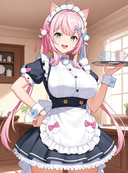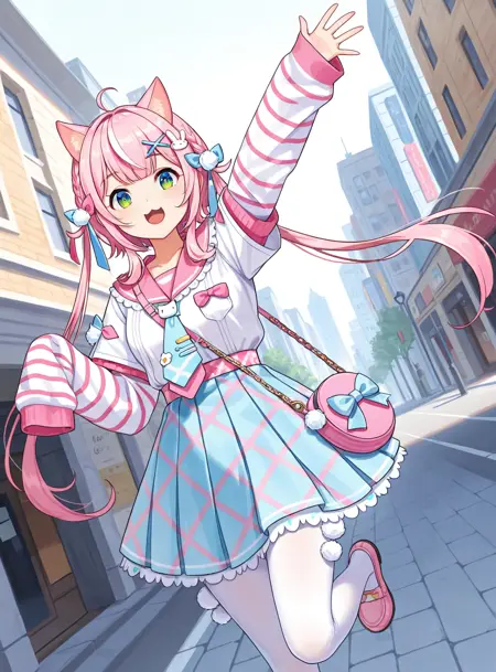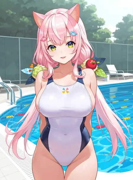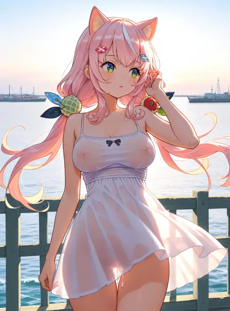 short hair, twintails, bunny hairclip, pom pom hair ornament, cat ears,または