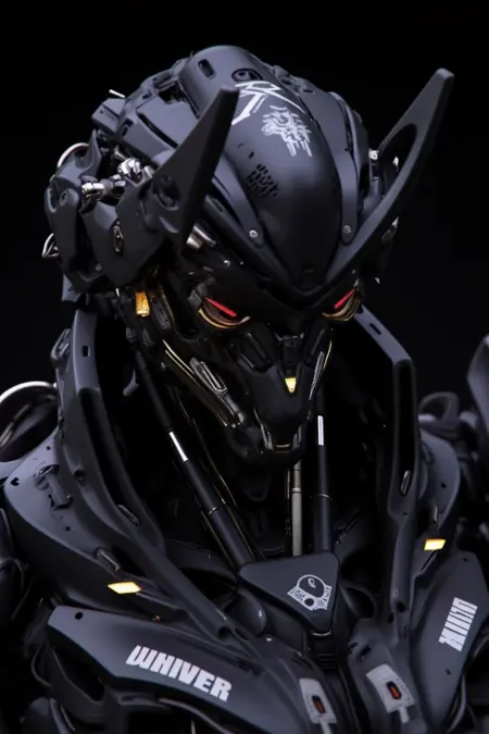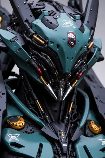 しっかりした外見のメカで、角ばった有機的なシャープなデザインが複雑に組み合わさっている