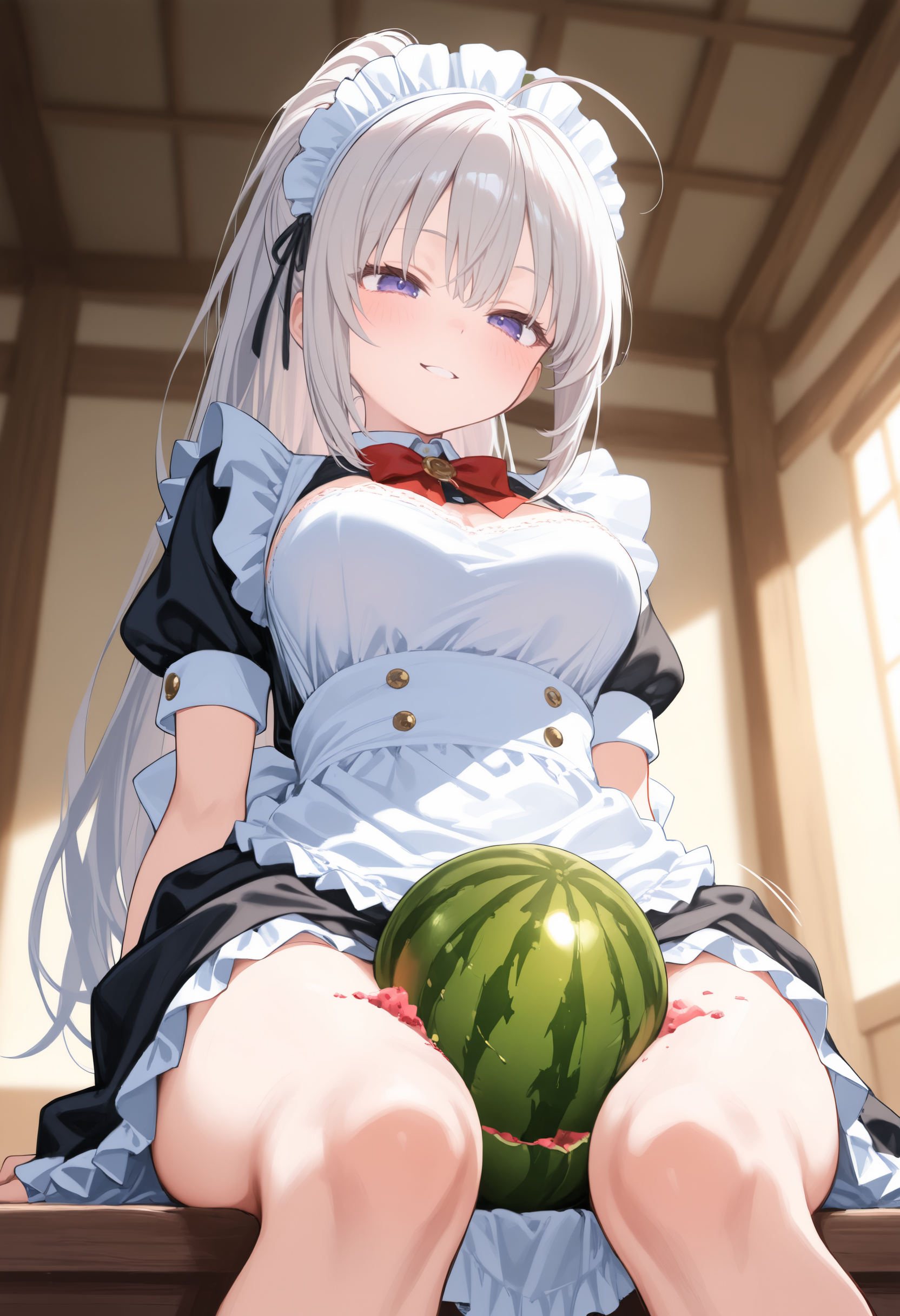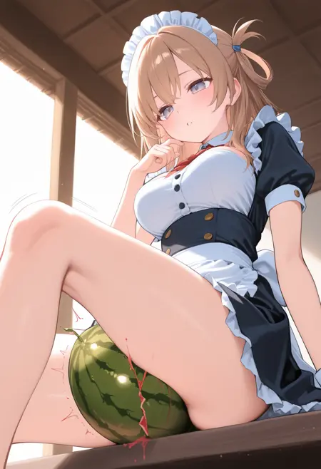 스위카를 다리 사이에 놓고 허벅지 힘으로 깨려는 LoRA입니다.