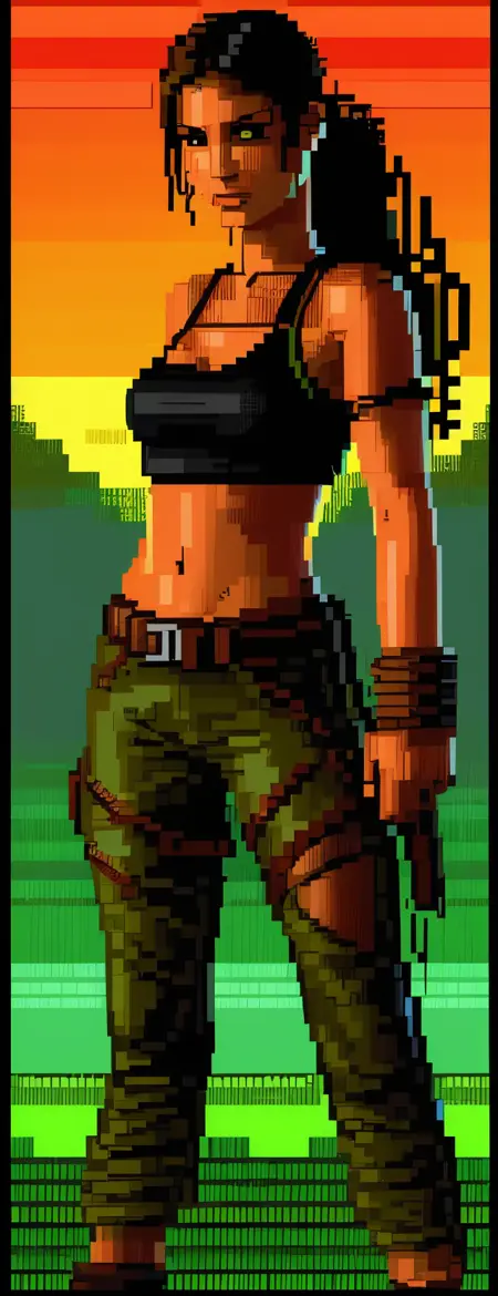 This will make reasonable quality 4bit ANSI Art-style graphics. Not really quite 4-bit, but you can replace the colours in any graphics editor if you like. Upscaler is needed for the best effects (4x-Ultrasharp should do). Use simple, minimalistic prompts. Although you can experiment and see where it leads you.