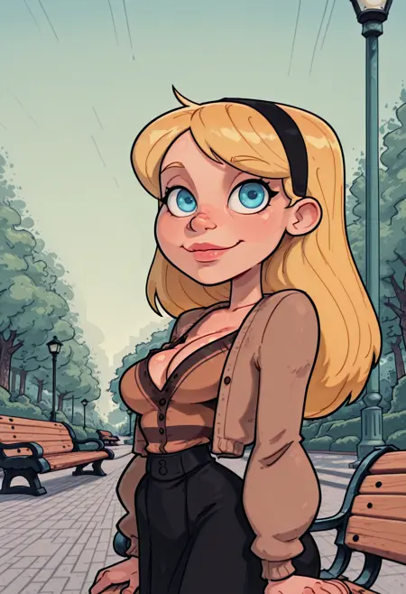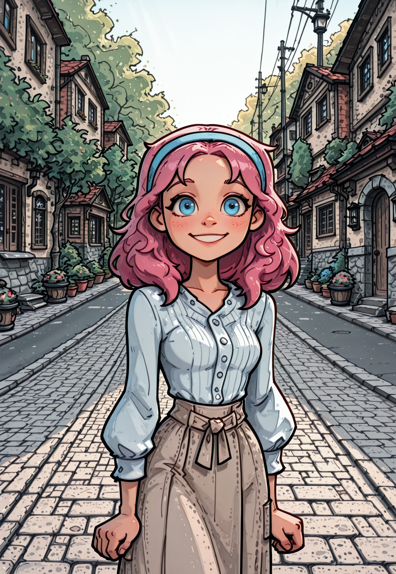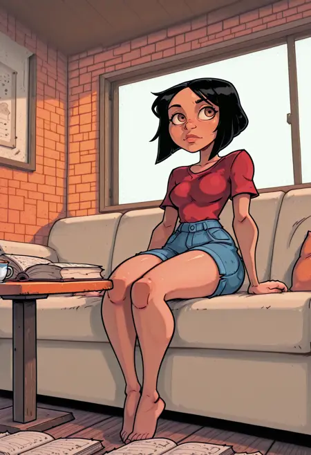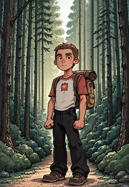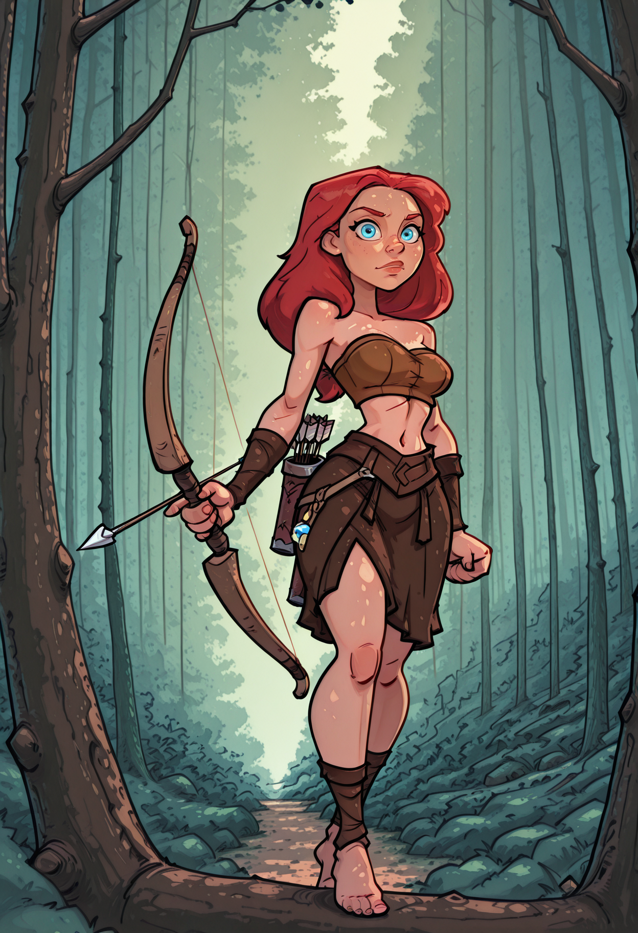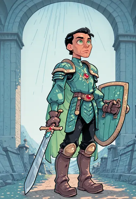 一种卡通风格,着色柔和,看起来有点像用水彩颜料绘制的。