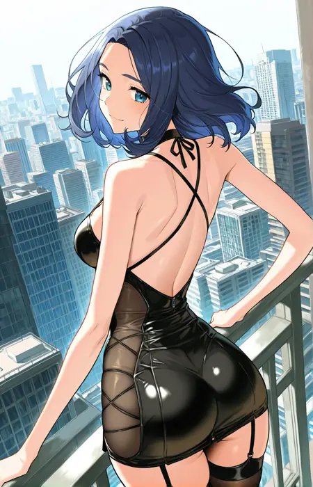 | トレーニングワード | Song, 1 girl, solo, blue hair, medium hair, center-parted bangs, blue eyes,コピーしました! Song_outfit1, light grey T-shirt, short sleeves, beige high-waist miniskirtコピーしました! Song_outfit2, black bodycon mini-dress, sheer mesh side panels, deep V halter neckline, criss-cross back straps, ultra-short hem, tight fit, black stiletto ankle boots,コピーしました! |