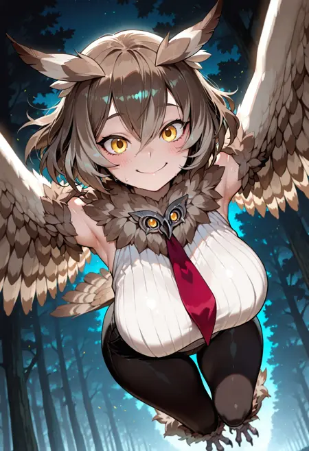 ⚡ Additional Info: Trained on Illustrious v0.1 using Kohya with granular tag separation for maximum flexibility. Each clothing piece and character detail is individually tagged, allowing you to easily modify specific elements like hair color, owl features, or outfit pieces without affecting other features.