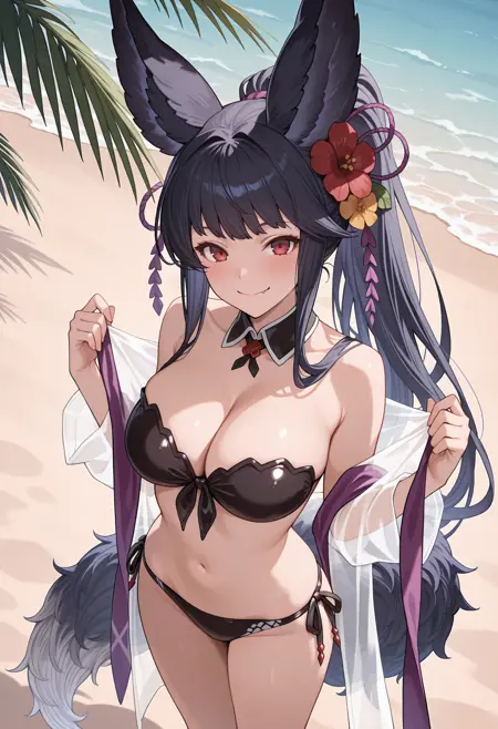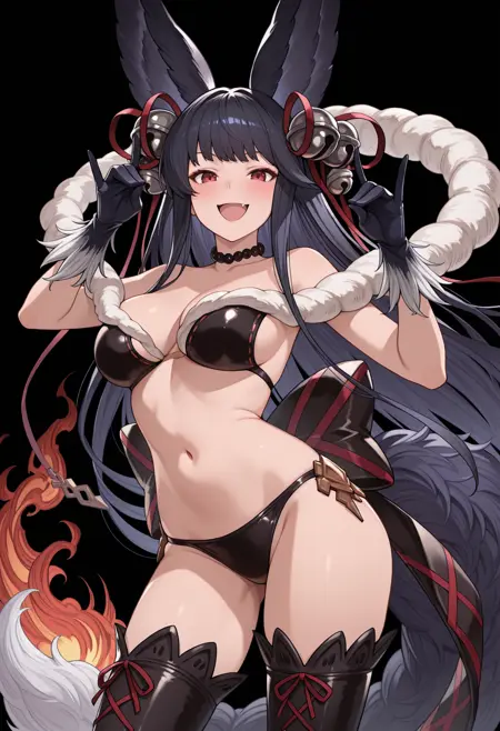 • gbfyuel, 黑发, 长发, 红眼, 狐耳, erune, 狐尾, 尖牙