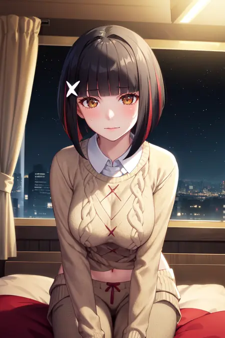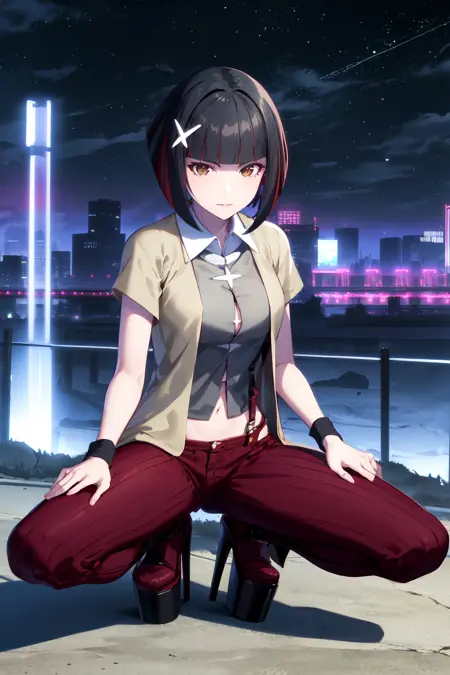 kagenuiyozuru, 短发, 波波头, 刘海, 多彩发色, 红发, 黑发, 染发, 棕色眼睛, 星形发饰, 肚脐,