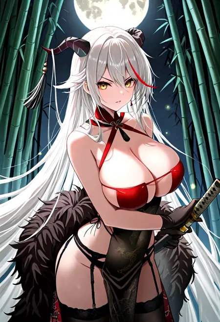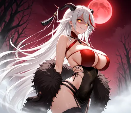 | 训练词汇 | agidef, very long hair, red streaked hair, white hair, yellow eyes, demon horns, hair between eyes, bangs,hair on horn,large breasts, cross earrings, breast curtains, bodystocking, black cape, red cape lining, iron cross,bare shoulders, black elbow gloves, cross-laced clothes, underbust, covered navel, high heel boots, black armored boots, asymmetrical footwear, knee boots,已复制! agirchina, very long hair, red streaked hair, white hair, yellow eyes, demon horns, hair between eyes, bangs,hair on horn, large breasts, horn tassel, halterneck, red eyepatch bikini, black feather boa, black gloves, pelvic curtain, garter belt, garter strap, laced thighhigh, red high heels,已复制! agirdress, very long hair, red streaked hair, white hair, yellow eyes, demon horns, hair between eyes, bangs,hair on horn, large breasts, cleavage,halter dress,short dress, pink dress, jewelry, fur-trimmed coat, fur trim, high heels,已复制! agirmaid, very long hair, red streaked hair, white hair, yellow eyes, demon horns, hair between eyes, bangs,hair on horn, large breasts, maid headdress, white apron, bandeau, underboob, black skirt, frills, white garter straps, white thighhighs, frilled armband,已复制! |