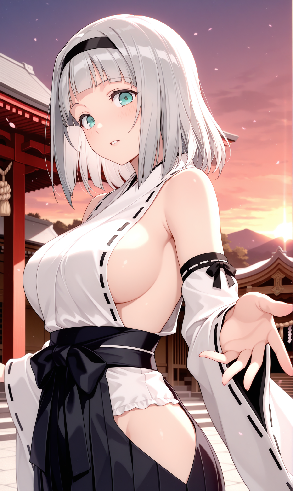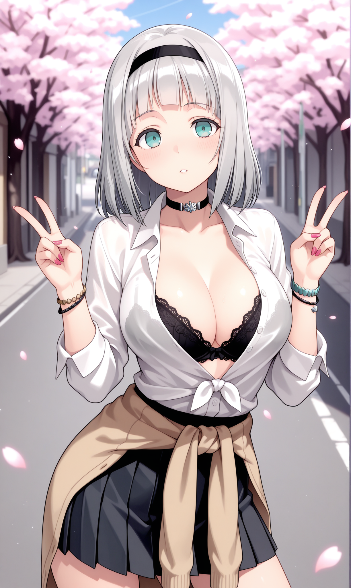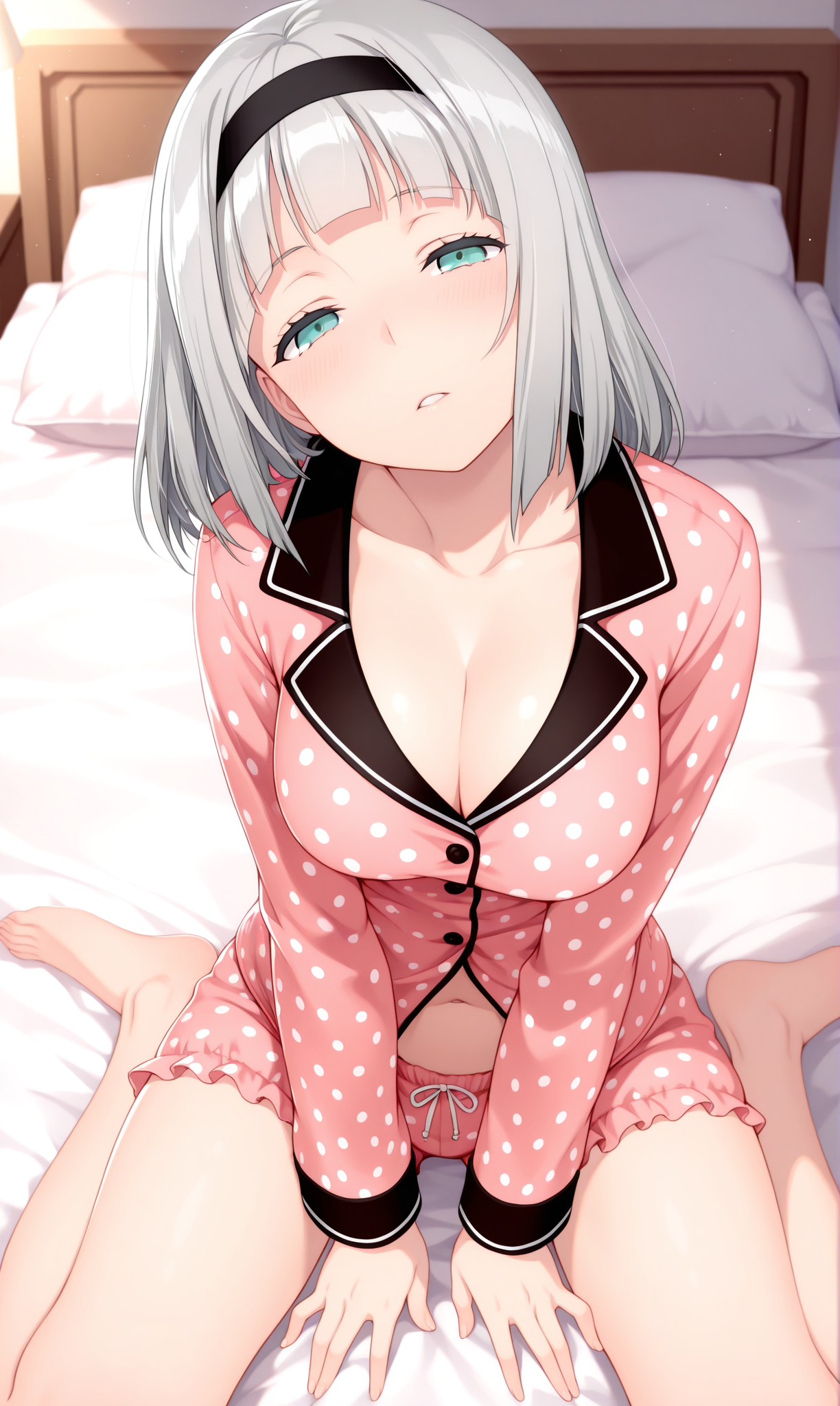 anna nishikinomiya, 파란 눈, 앞머리, 단발, 회색 머리, 헤어밴드,