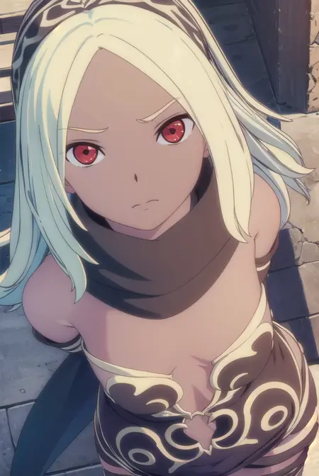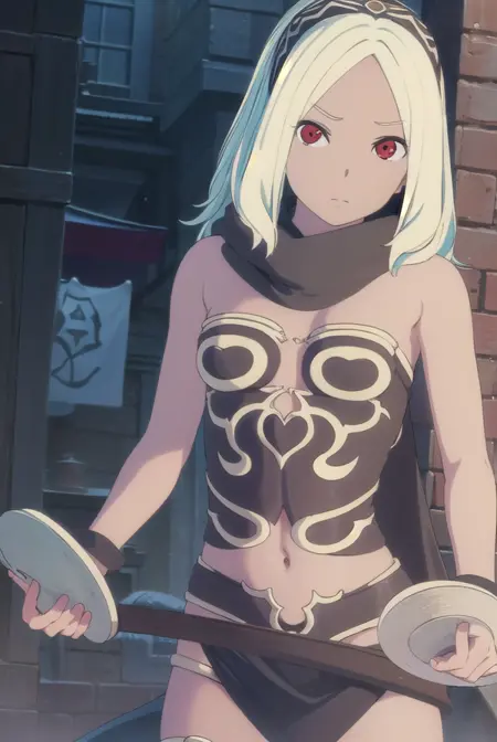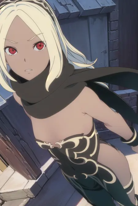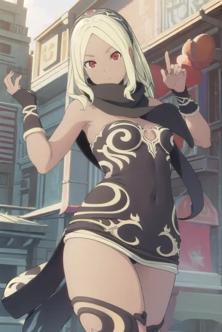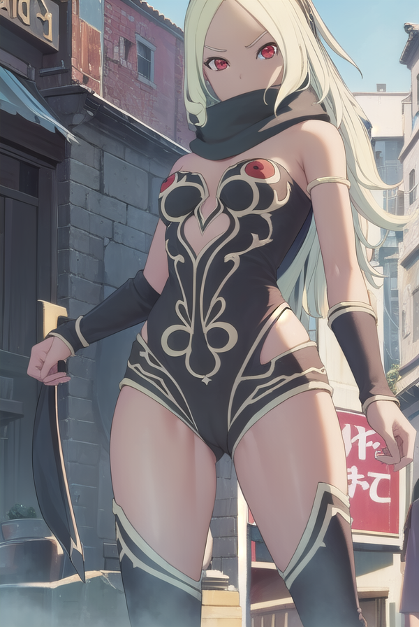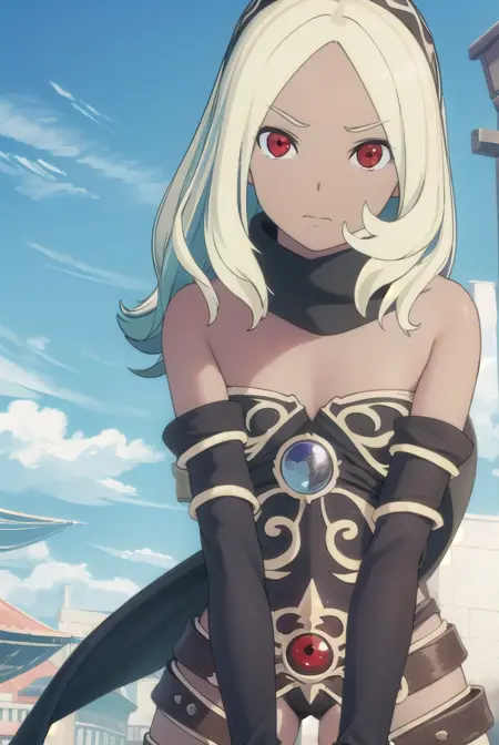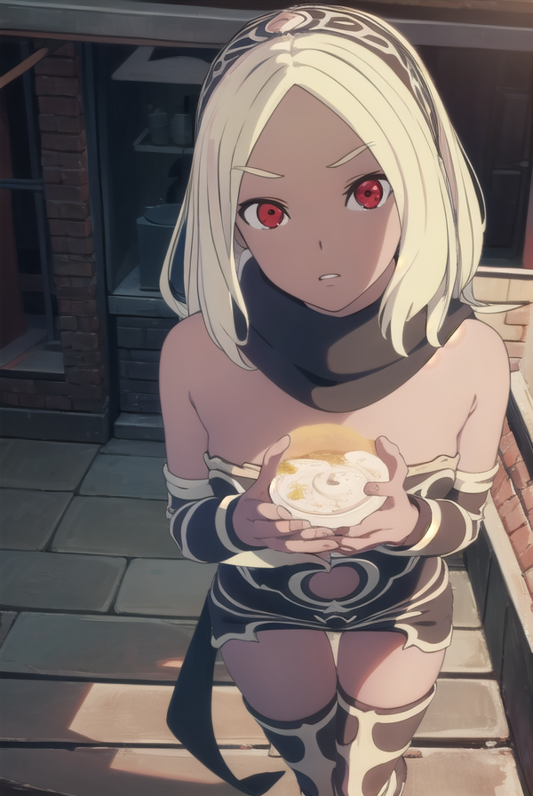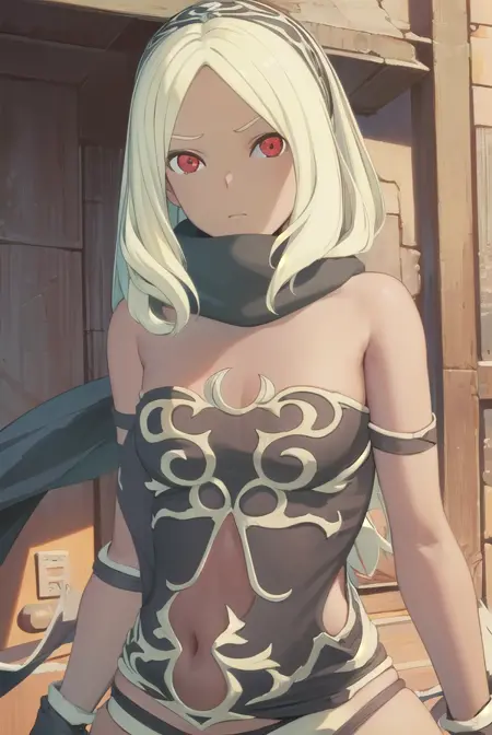 gravity rush kat, 長い髪, ブロンドの髪, (赤い目:1.3), 髪留め, 暗い肌, 暗い肌の女性,