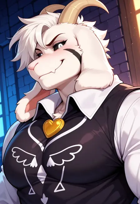 • トリガーワード:AsrielDreemur (undertale)、goat boy、white fur、black sclera、white eyes、black facial markings