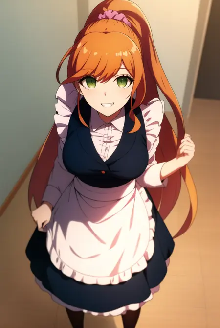 Three outfits (school uniform, maid, and labcoat): You can refer to the prompt words based on the example images.
