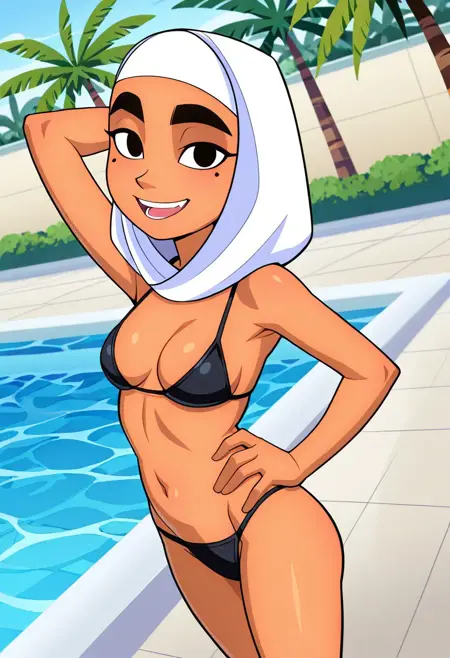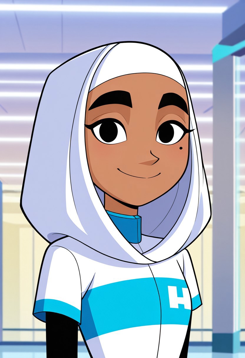 1girl,单人,ZahraGT,深色皮肤,黑色眼睛,浓眉,一只眼睛下方有痣,白色头巾,