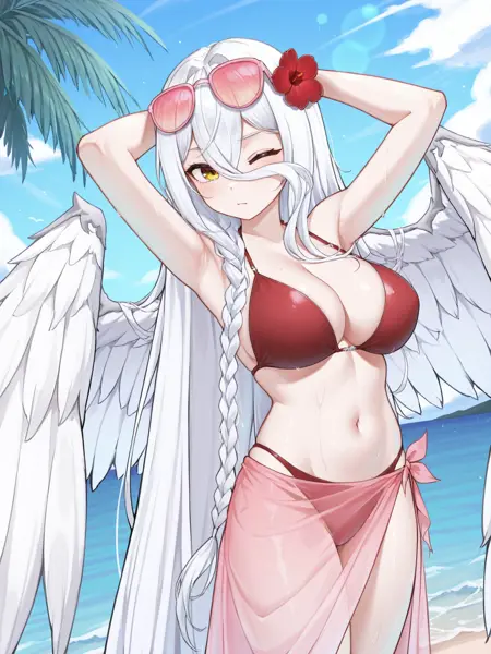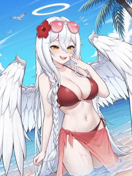 이번에 여러분께 제공하는 VTuber LoRA는 천사 알리웨이입니다! 두 가지 옷차림을 제공하며, 표준 복장과 빨간 비키니입니다. 날개 크기도 다양한 옵션이 있습니다. Clip Skip 2.