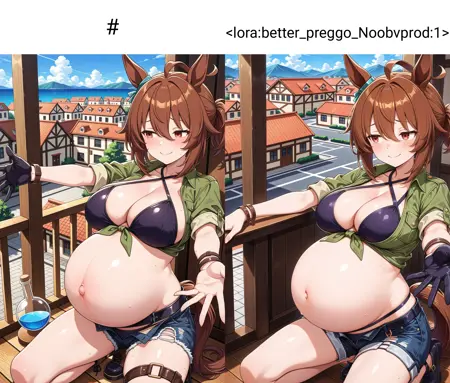 An alternate training result from my loose pregnant clothing lora, main goal is to remove annoying middle vertical seams in clothes when pregnant woman generated with covered bellies. I add bare belly without linea nigra images in the dataset, so it also remove it in bare bellies to make it looks cleaner. belly button is also become less popped out. It become somewhat unrealistic, but it's cleaner.