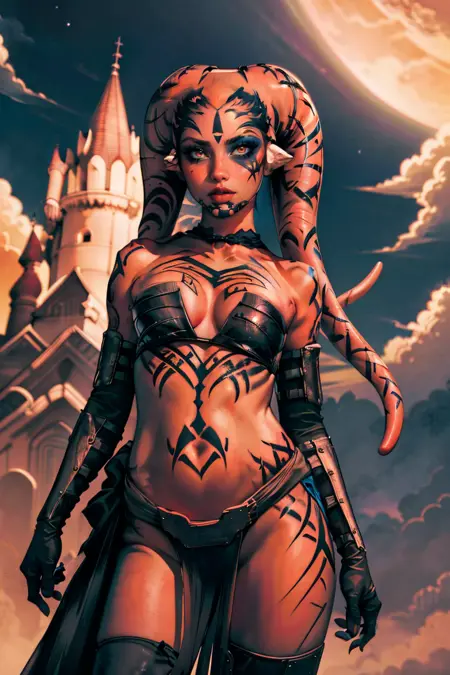 - 色付きの肌、胸、タトゥー、異星人、赤い肌、大きな胸、くびれ、引き締まった体型、黄色い目、全身タトゥー、唇、触手のような髪、アニメ化、ボディペイント、顔のタトゥー、化粧、鼻、太ももが太い、