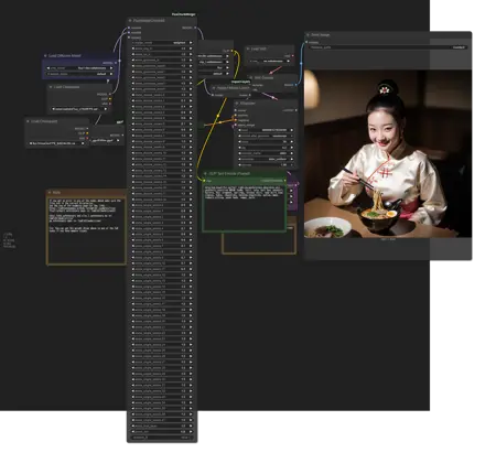 输入时,仅将基础模型作为模型载入工作流;用于合并的模型信息仅接收文件路径,内部仅访问必要的部分。合并后的模型以BF16格式保存在VRAM中,因此无法避免占用大量显存。因此,我在采样器前加入了FP8转换节点。即使包含FP8转换,预览速度也应当更快。请参考上传图片中的工作流。在我的环境中,若保持BF16,VRAM占用约为48GB;转换为FP8后,降至约21GB。若放弃实时预览,则合并本身几乎不占用太多VRAM,此时消耗约为10GB,其中大部分是用于合并后预览的文本编码器。