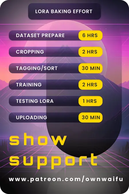 Hello there! If you're enjoying my project, consider joining to our Ko-fi Memberships. and get βοΈ50% discount on Commissions with other benefits. Your support means a lot, and as a thank-you, we'll be dropping a bunch of well-trained LoRAs exclusively for Supporters before sharing them on Civitai.