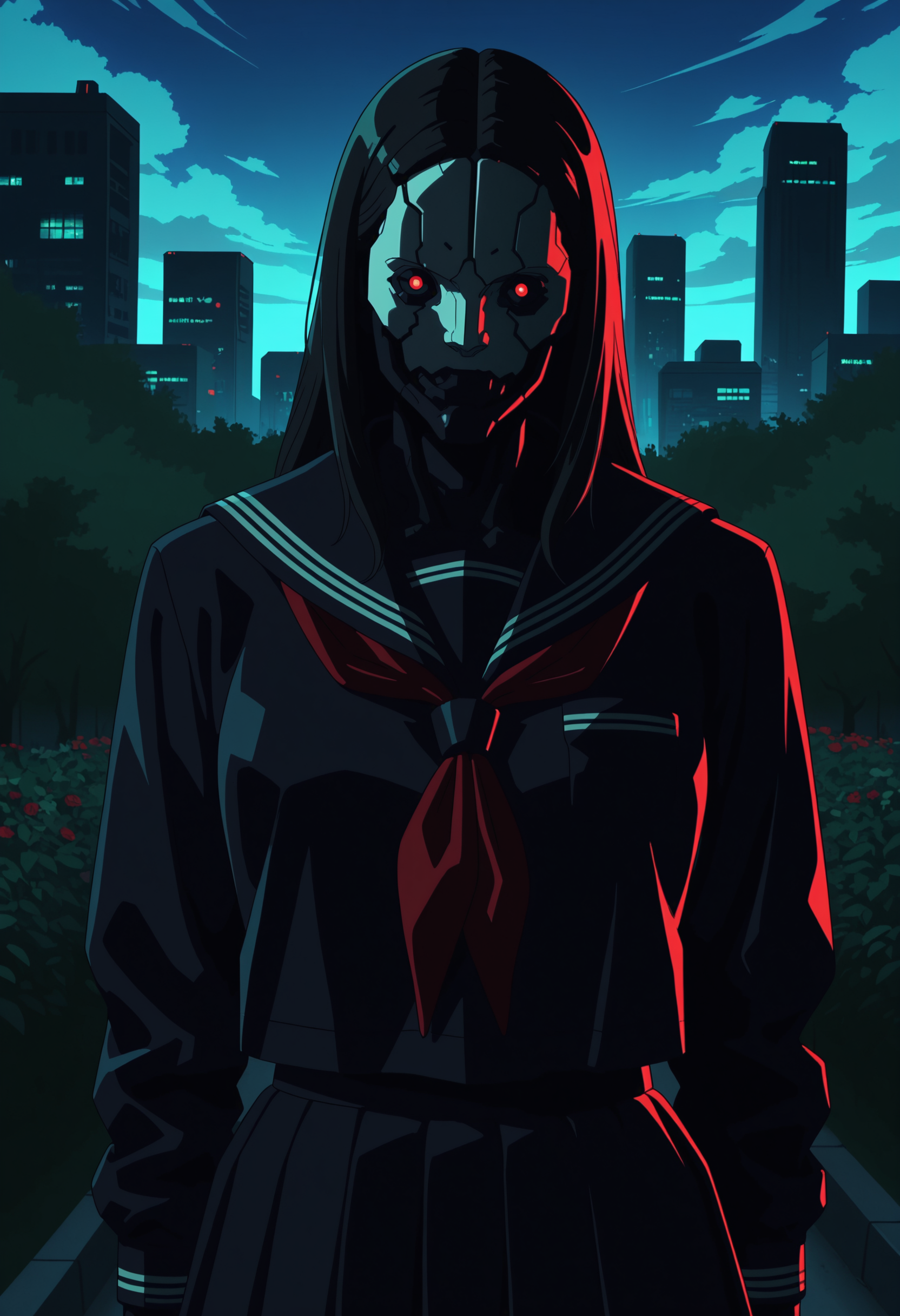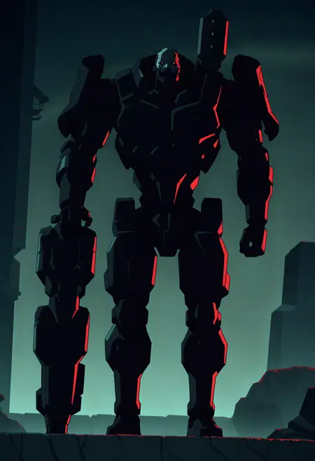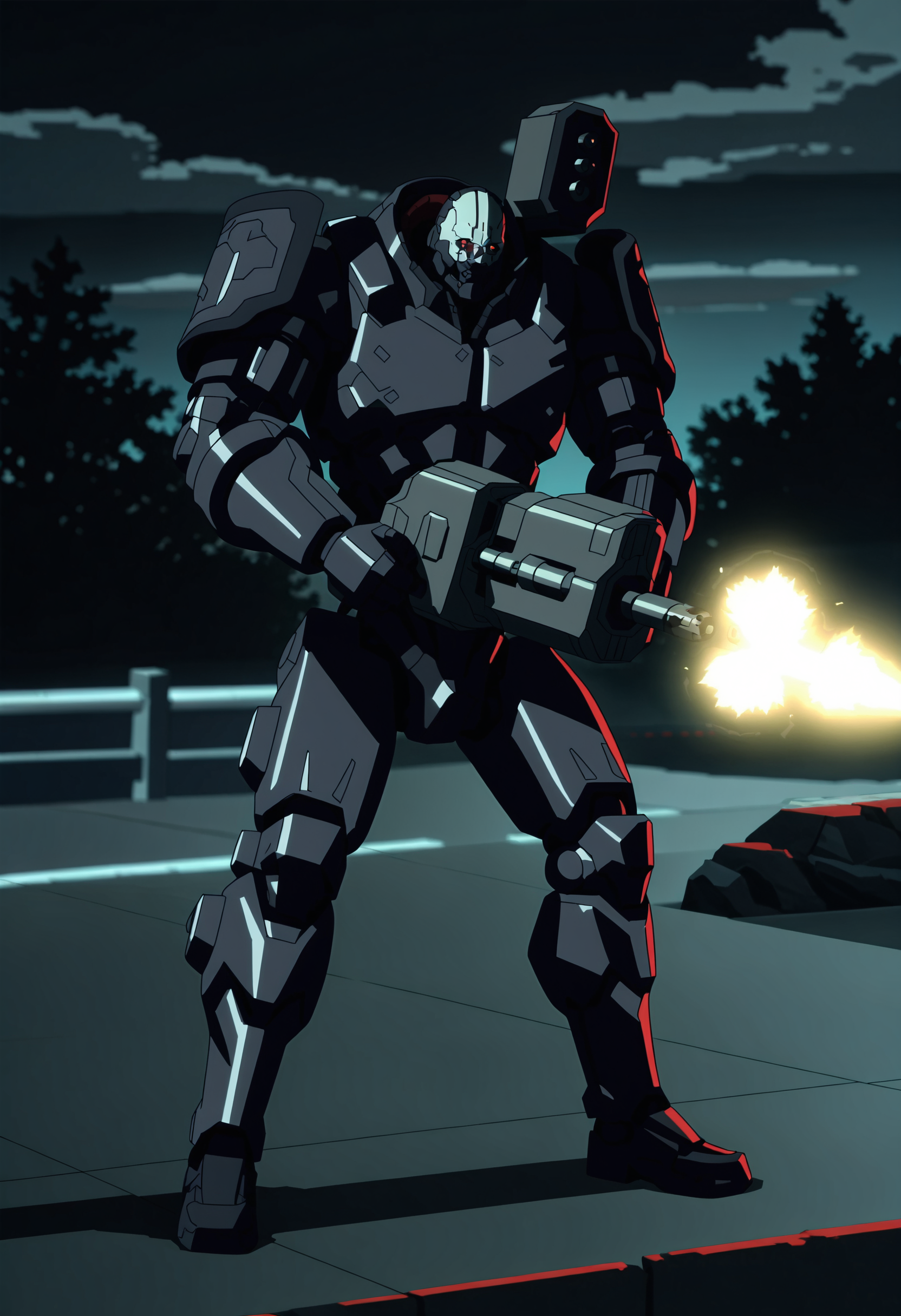 adesilf, robot, red eyes, glowing eyes, shoulder cannon