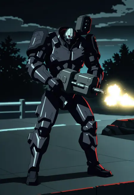 adesilf, 机器人, 红眼, 发光眼睛, 肩部加农炮