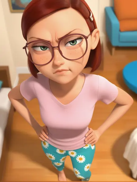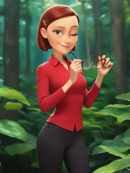 Rio_Linda, 1girl, 녹색 눈, 속눈썹, 입술, 붉은 머리, 단발, 머리클립, 동그란 안경, 혼자, 주근깨, 공식 스타일