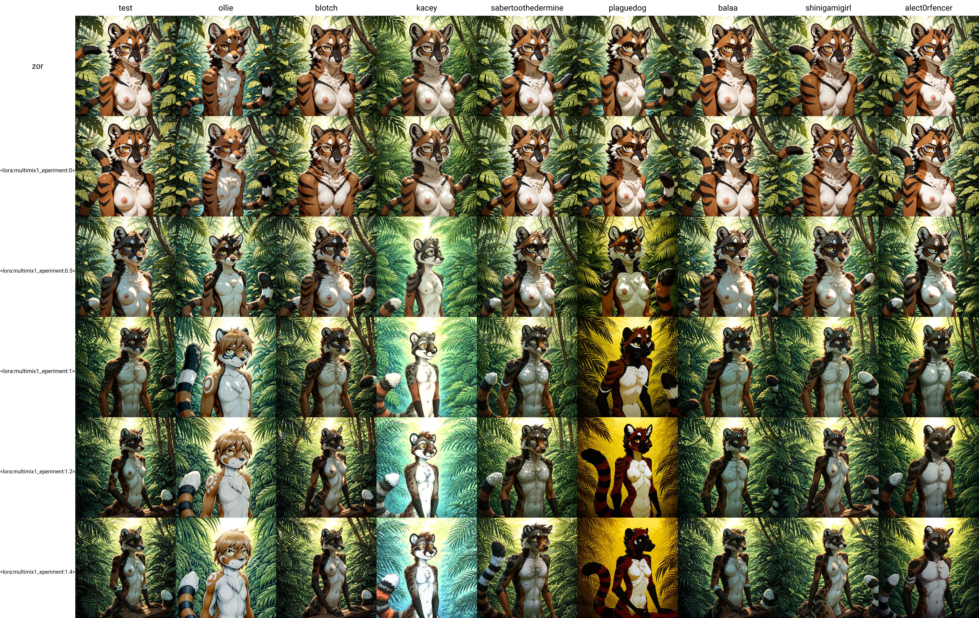 이 LoRA의 전체 목표는 애니메이션 스타일에서 벗어나 더 서양 스타일로 이동하면서 퓨리 콘텐츠에 더 큰 경향을 부여하는 것입니다.
