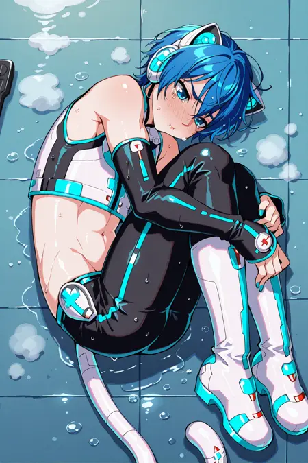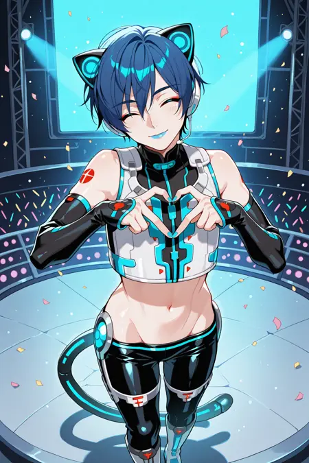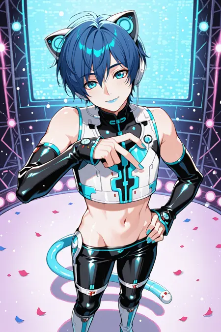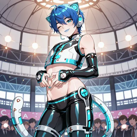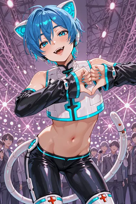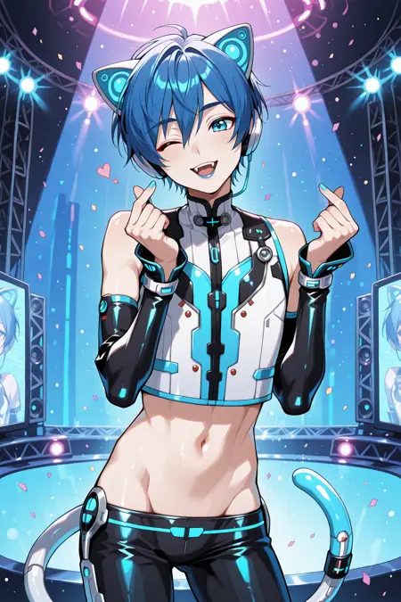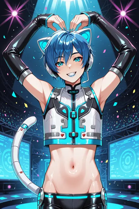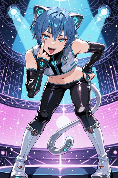 얼굴 프롬프트: 1boy, cybercat, bishounen, 파란 눈, 단발, 파란 머리, 고양이 귀