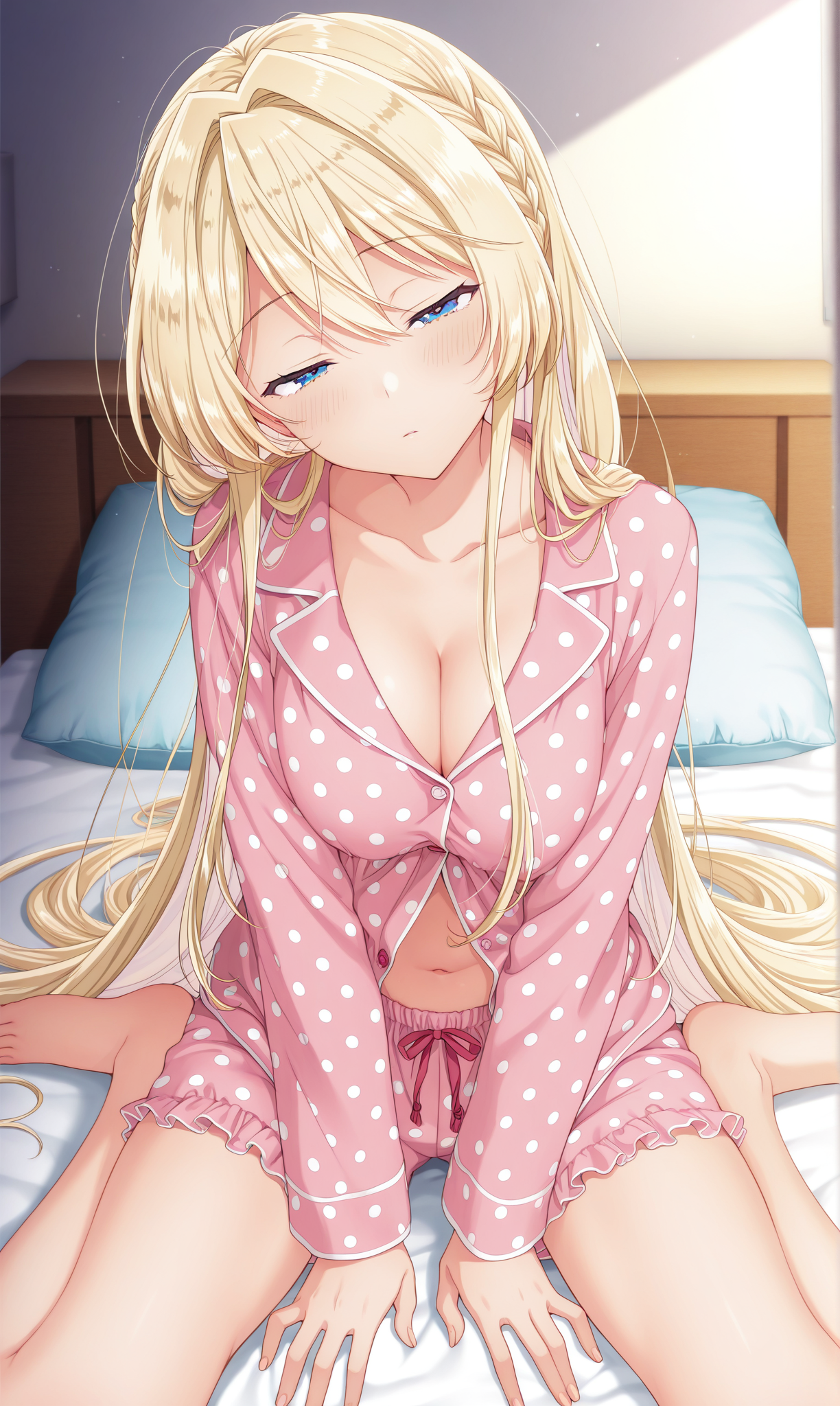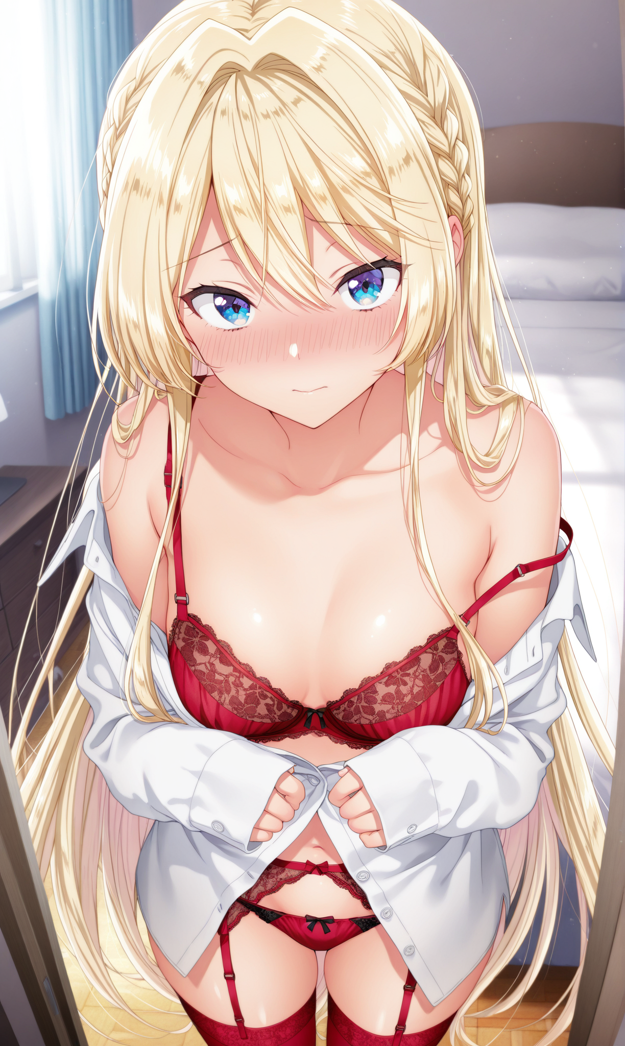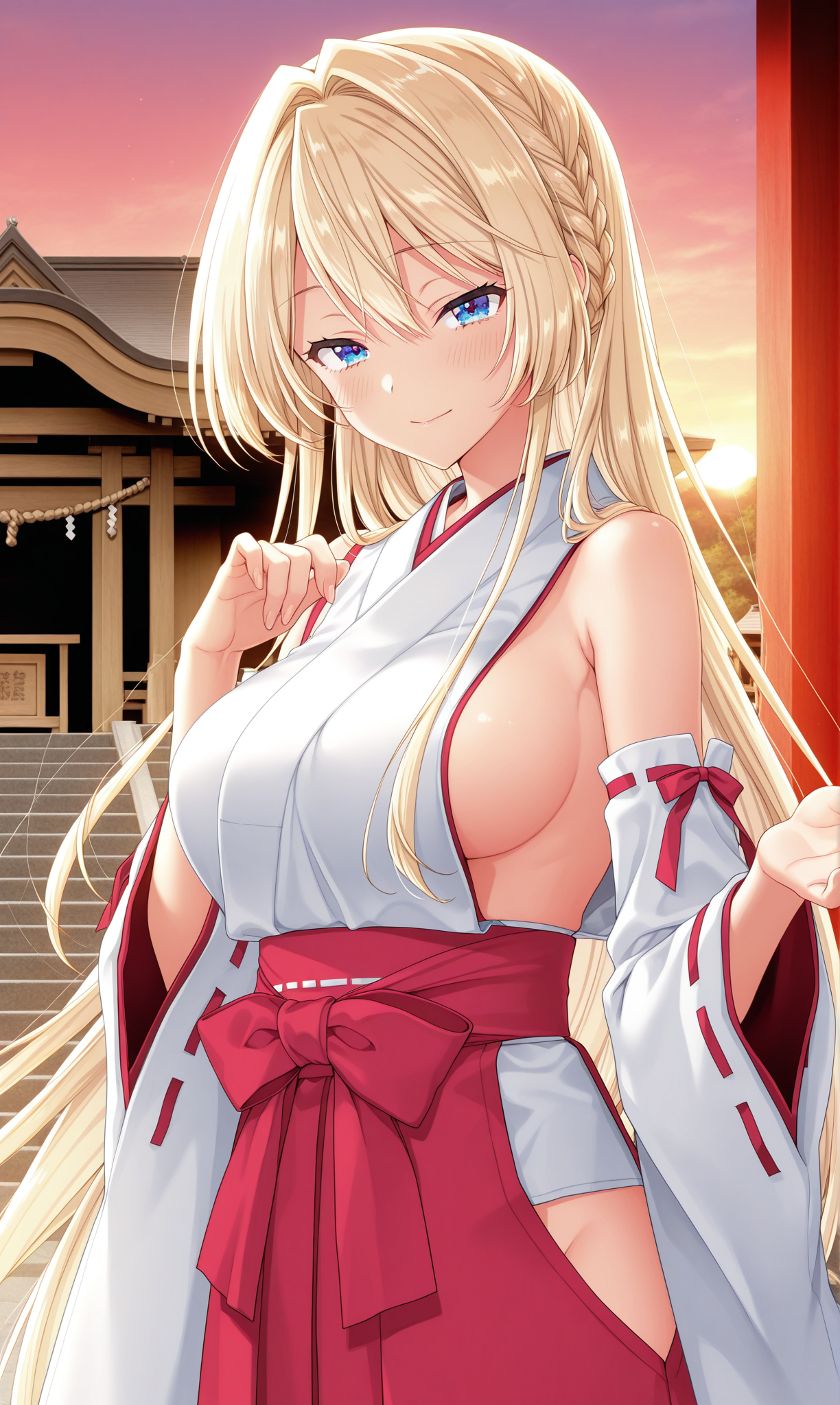 ouzuka mai, 파란 눈, 금발, 땋은 머리, 매우 긴 머리