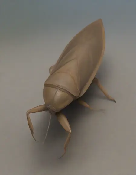Recommend Prompt:Giant water bug, proboscis, thick capturing front legs, capture food, suck body fluids,