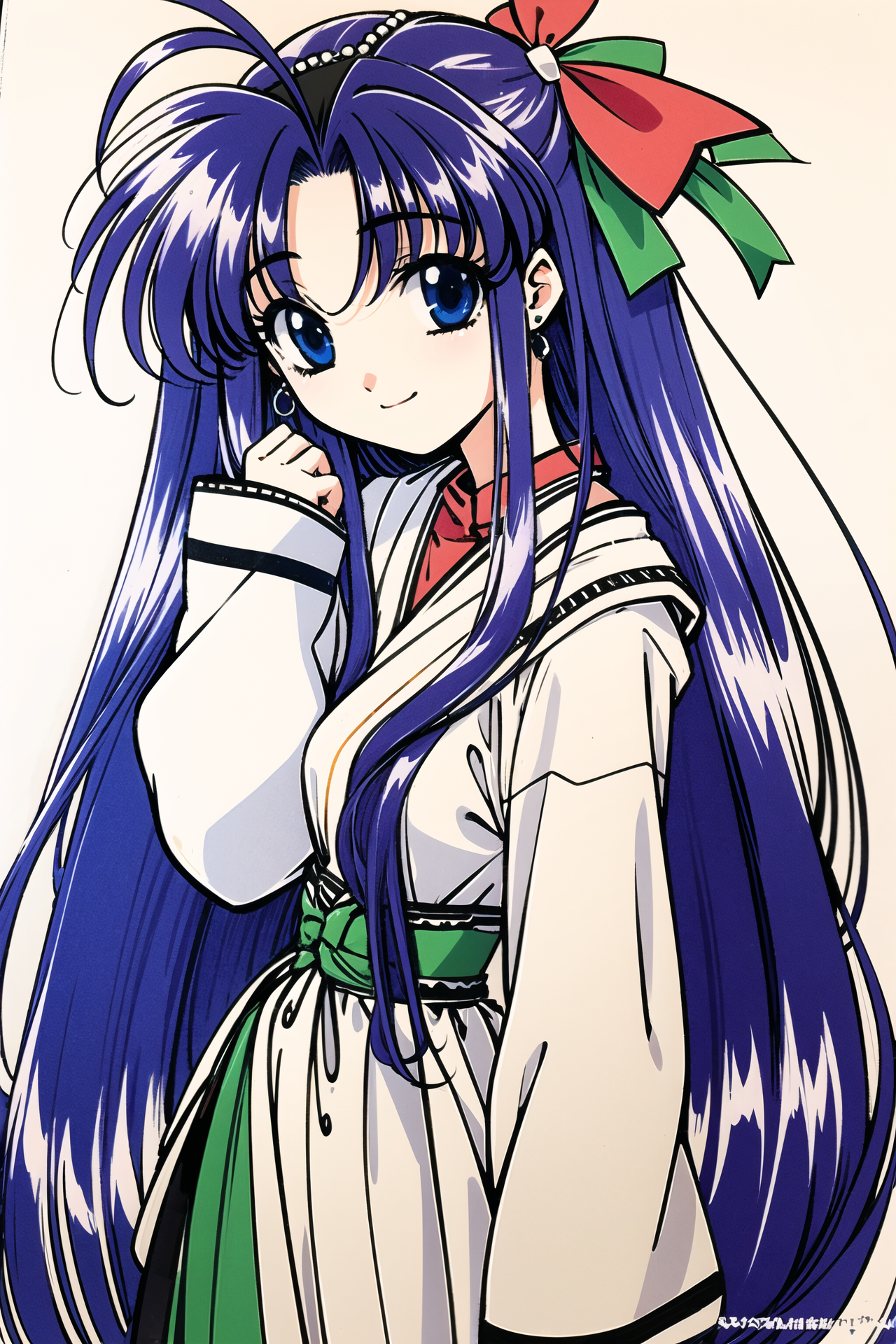 训练图片全部来自该画师的原画集,TV版动画图片素材没有混入其中,从而获得纯净的樱野铃音《守护月天》风格的LORA。