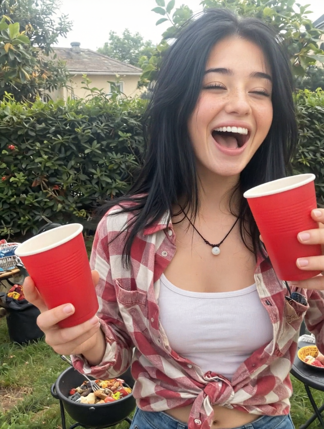 * [角色细节]: 描述她的表情、五官特征、服装和动作。