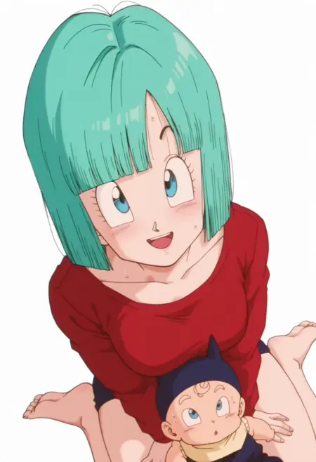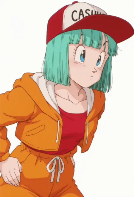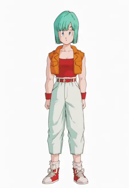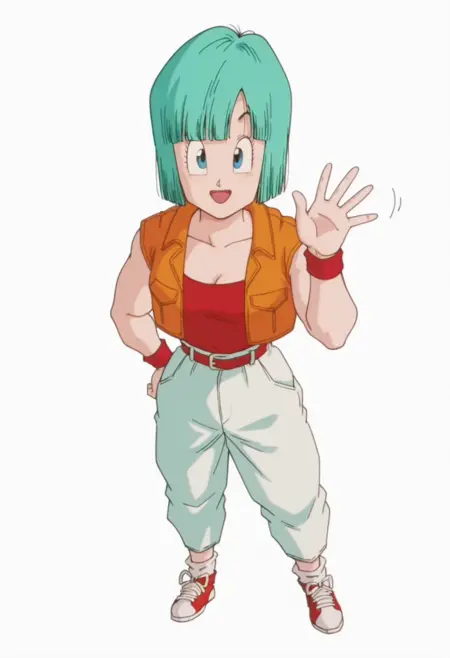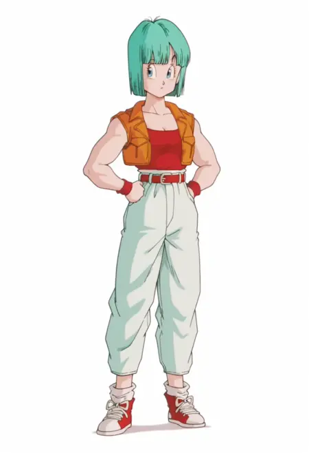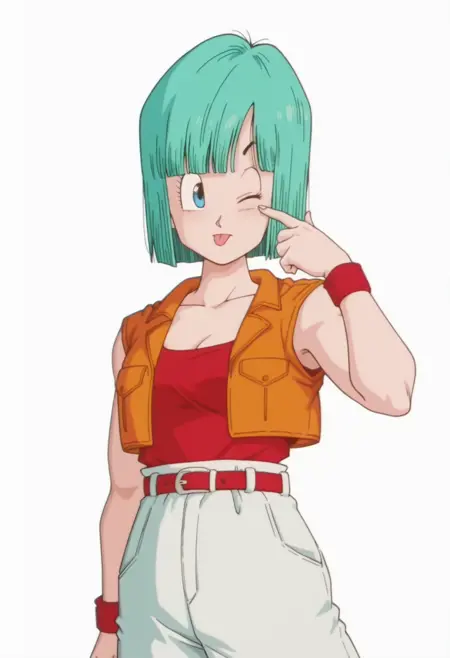 bulma, blue eyes, aqua hair, short hair, bob cut, blunt bangs,